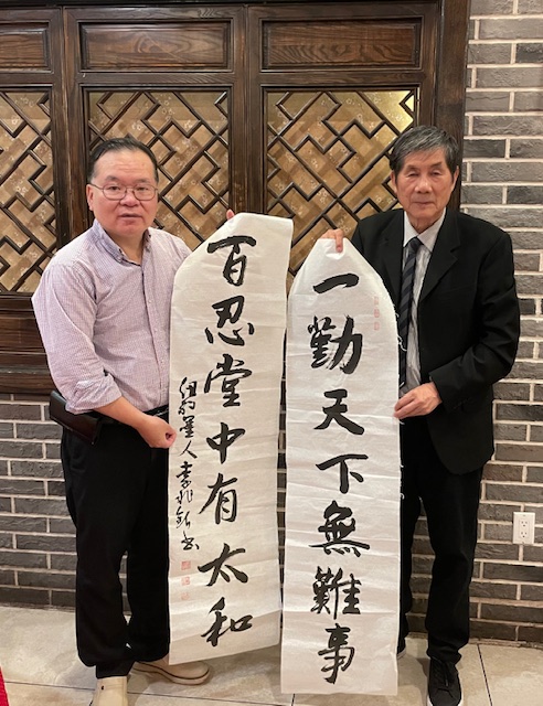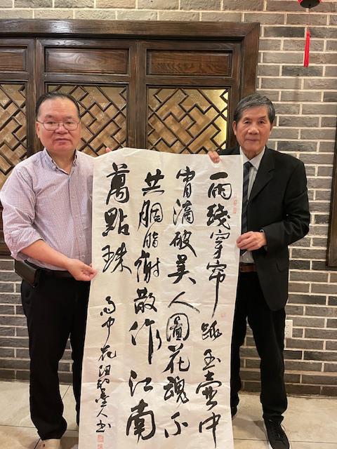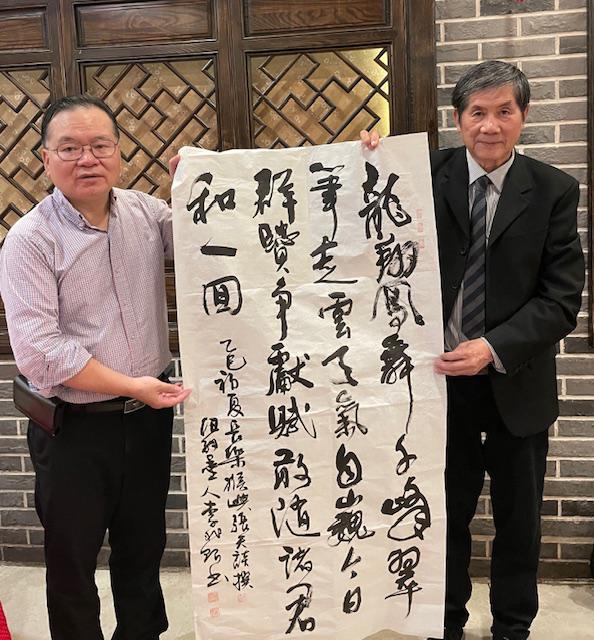 李兆银先生表示,此次赠字既是向张天谈先生长期致力于侨界文化建设的致敬,亦是对二人友谊的珍贵纪念。张天谈先生则感慨道:“李兆银先生的书法不仅是视觉艺术,更承载着海外游子的文化根脉。”活动尾声,张天谈先生即兴赋诗“今日群贤争献赋,敢和诸君和一回”,将现场气氛推向高潮。