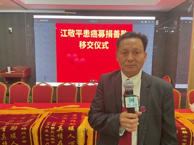 美国福州琅岐联合总会主席江富春表示:今天是我們琅岐聯合總會為鄉親江敬平患癌募捐善款移交儀式新聞發布會,江敬平先生是琅岐農旗村人,今年58歲,10年前來美,妻子與父母都在大陸,自己單身在美國做工,因一年前不幸患上癌症,于5月份求助聯合總會,經過鄉親一起為他募捐善款7萬多美元,度過難關,也是我們聯合總會一方有難、八方支援為宗旨,為鄉親服務。