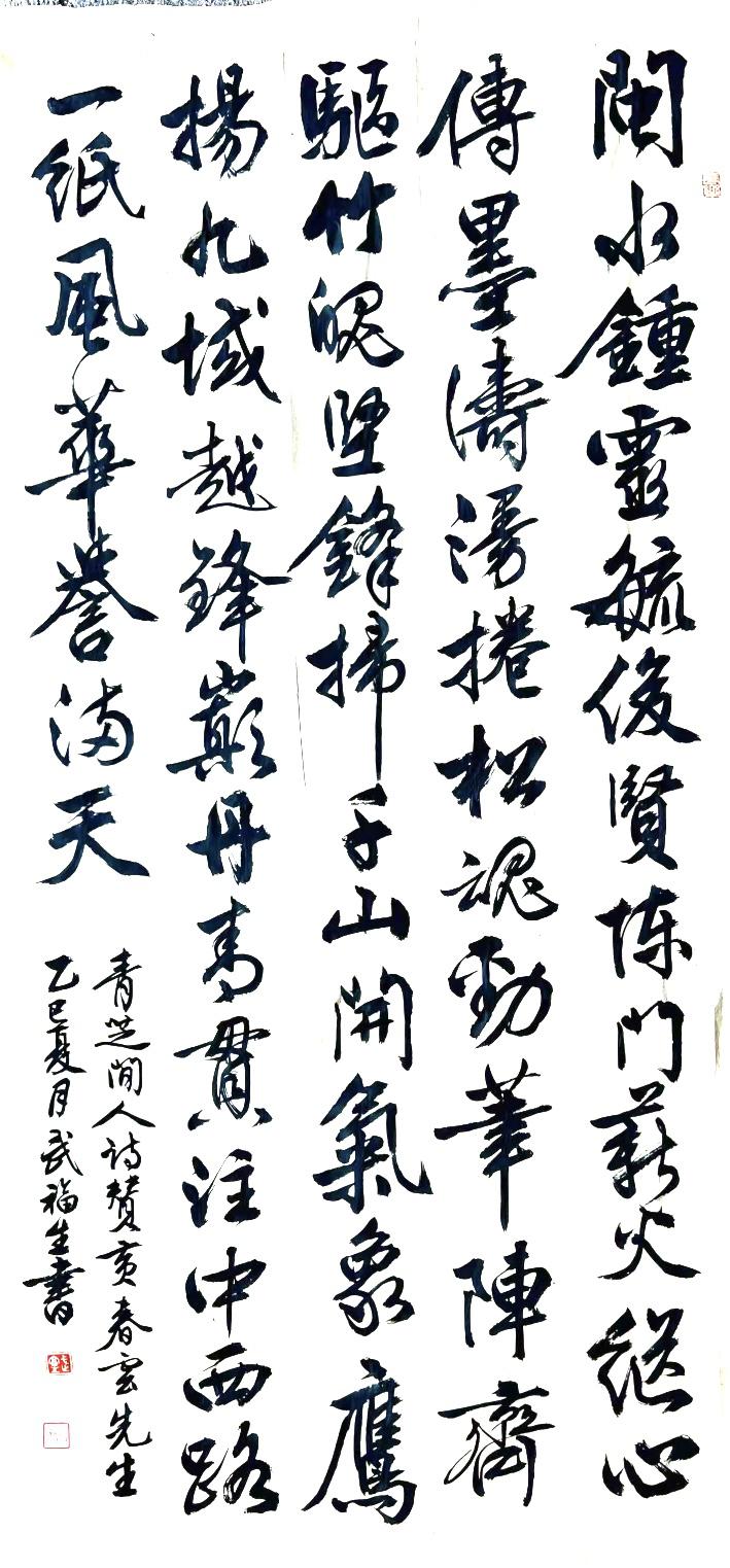 此诗如黄公画鹰:首联伏爪(师承根基),颔联振羽(笔墨双绝),颈联击空(艺术高度),尾联睥睨(国际影响)。尤以“墨涛/笔阵”一联最妙——波涛喻水墨之柔,军阵显笔力之刚,刚柔相济处正是大写意精髓。